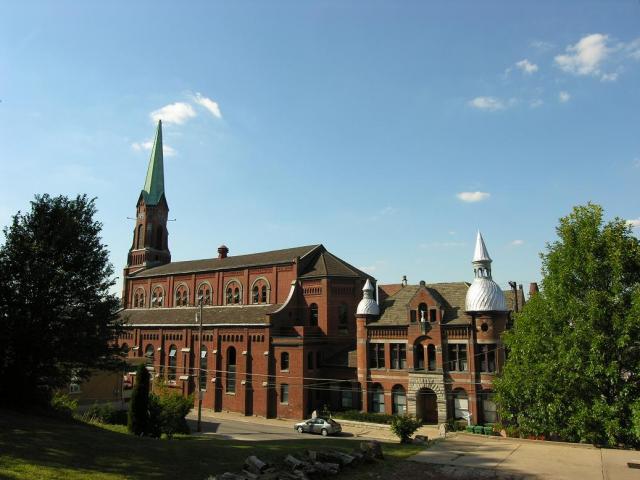 Sorry if you’re uninterested in Pittsburgh, but there’s more you should know about it. For instance, I found my dream house, or rather, dream condo. It’s in a church. On the South Side (the artsy side) there is an old church that’s being renovated into condo units; it’s called Angel’s Arms, and the units are custom-designed per occupant. The view of the city is spectacular! This city is seriously like the San Francisco of the Midwest. I kind of can’t believe I’d never been there before. Here is the church. There is the steeple…
